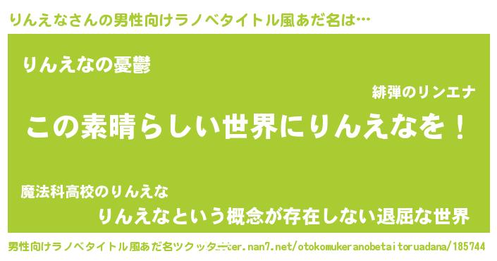| 女子向けラノベタイトル風あだ名 | 『悪役りんえなに転生したようですが、知った事ではありません』 |