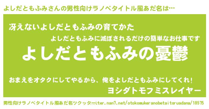 | ヘコむあだ名 | 『よしっふぃ~』『よしだともふみ(笑)』 |