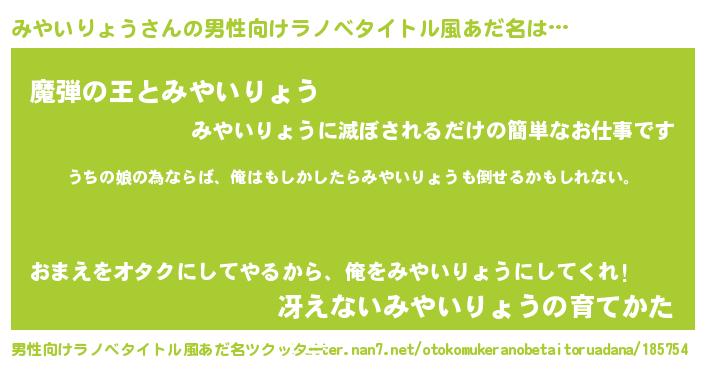 | ファンタジー風あだ名 | 『エターナルミヤイリョウー』 |