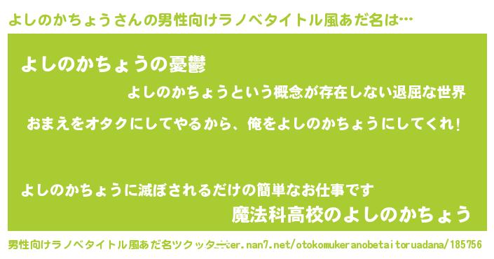 | ヘコむあだ名 | 『よしもー』『よしのかちょう(遠い目)』 |