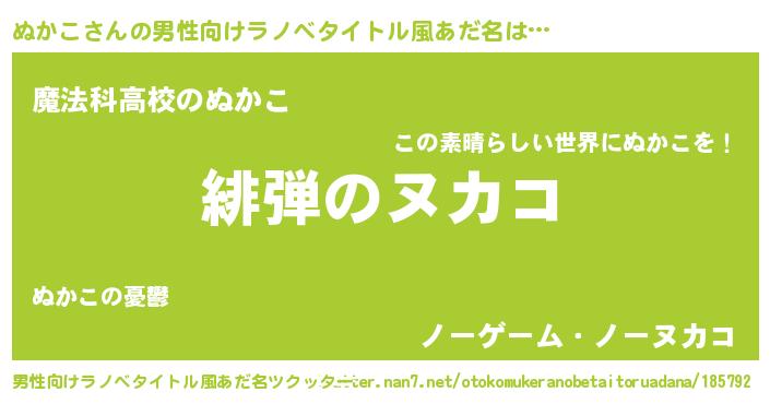 | ヒーロー風カッコイイあだ名 | 『超時空戦士ヌカコ』『愛の使者ぬかこ』 |