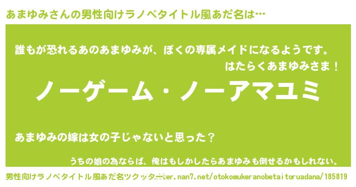 | 女子向けラノベタイトル風あだ名 | 『死神あまゆみの再婚』 |