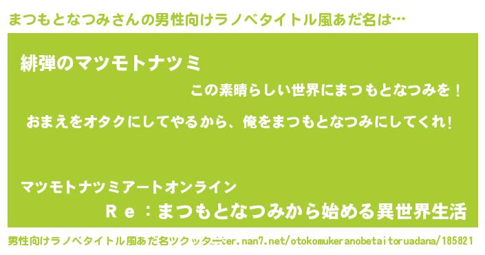 | 女子向けラノベタイトル風あだ名 | 『まつもとなつみ恋絵巻』 |