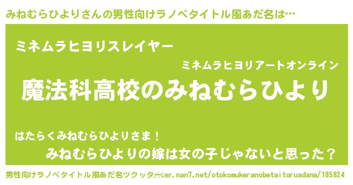 | 女子向けラノベタイトル風あだ名 | 『みねむらひよりなんてお断りですっ。』 |