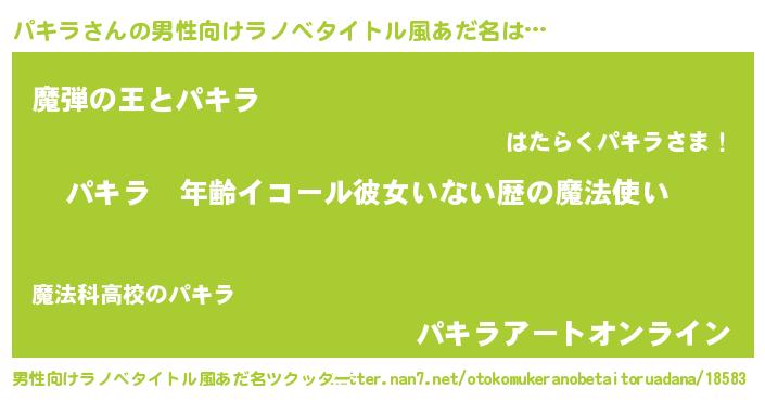 | 胡散臭い通販商品みたいなあだ名 | 『あなたにだけ特別に提供する世界で10本だけ現存している希少なブランデー…その名も「パキラ」』 |