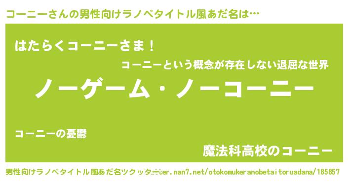 | ヘコむあだ名 | 『コーニー(笑)』『コーもー』『豆乳』 |