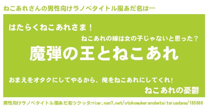 | 意味不明あだ名 | 『住所不定無職ねこあれ(2歳)』 |