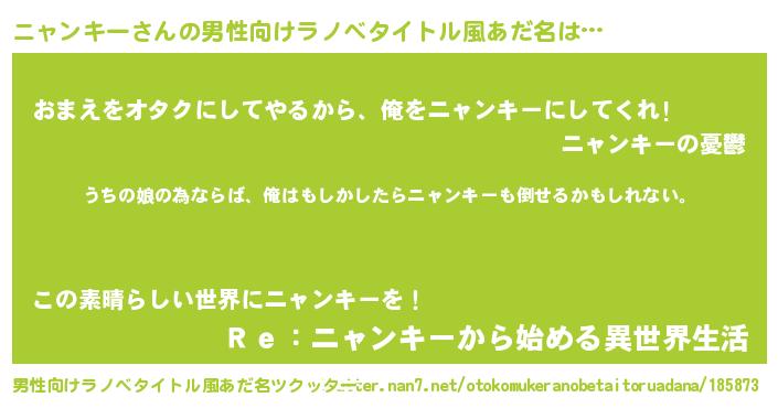 | 胡散臭い通販商品みたいなあだ名 | 『世界が平和になる高級そうな壺…その名も「ニャンキー」』 |