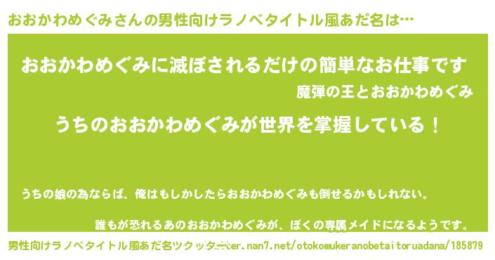 | 意味不明あだ名 | 『永久保存おおかわめぐみ』 |