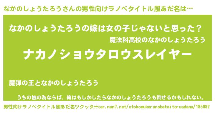 | 胡散臭い通販商品みたいなあだ名 | 『信頼と実績のサプリメント…その名も「なかのしょうたろう」』 |