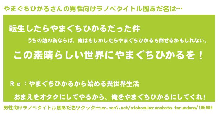 | 意味不明あだ名 | 『住所不定無職やまぐちひかる(10歳)』 |
