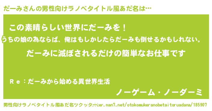 | 女子向けラノベタイトル風あだ名 | 『横柄だーみと宰相陛下』『闇のだーみ』 |