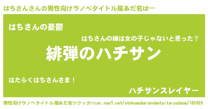 | 胡散臭い通販商品みたいなあだ名 | 『必ず成功する霊験あらたかなお札…その名も「はちさん」』 |