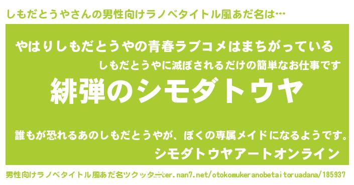 | 伝説のあだ名 | 『秘められし格闘家しもだとうや』 |