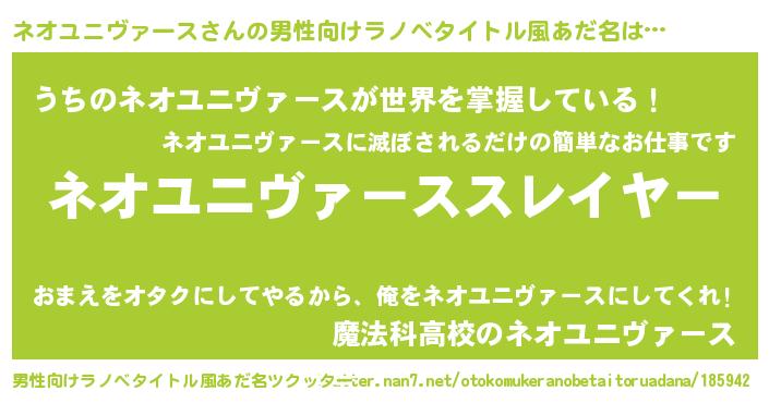 | 意味不明あだ名 | 『めかぶ科ネオユニヴァース属』 |