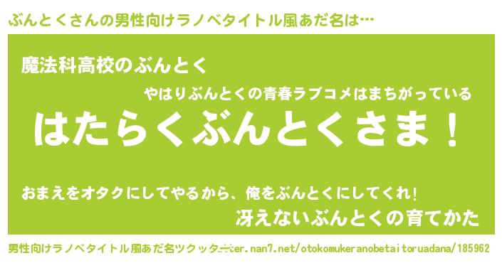 | ヒーロー風カッコイイあだ名 | 『サイバー戦士ブントク』『魔戒騎士ブン』 |