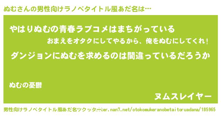 | 女子向けラノベタイトル風あだ名 | 『ぬむは平凡を望む』『ぬむ伯爵の花嫁』 |