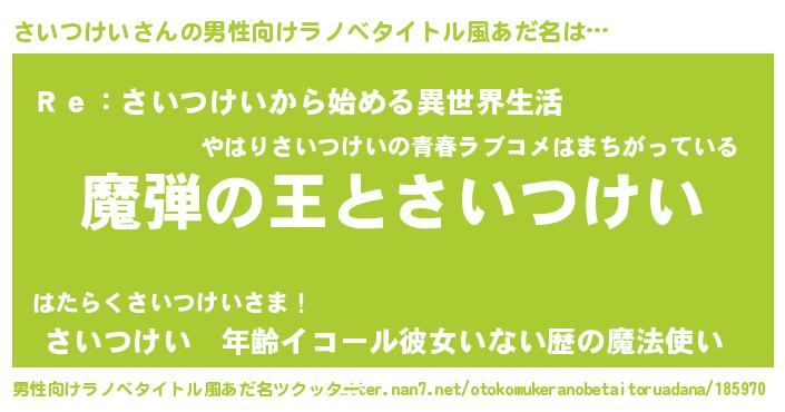 | 胡散臭い通販商品みたいなあだ名 | 『世界中を虜にした100年もののヴィンテージワイン…その名も「さいつけい」』 |