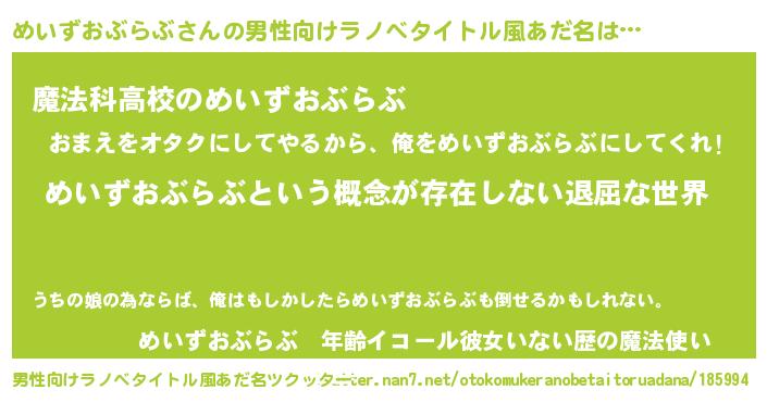 | 意味不明あだ名 | 『永久保存めいずおぶらぶ』 |