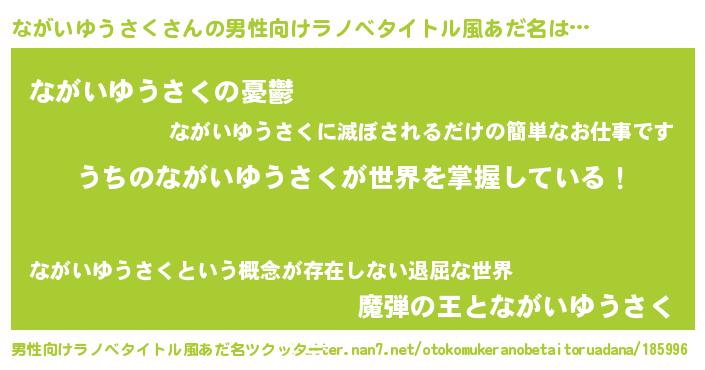 | ヘコむあだ名 | 『ながっふぃ~』『ながいゆうさく(小並感)』 |