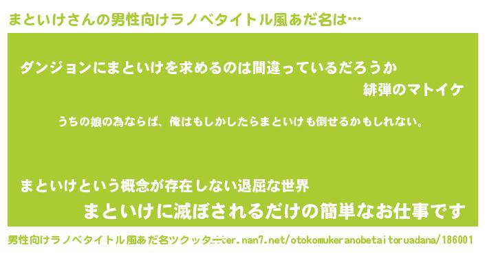 | 胡散臭い通販商品みたいなあだ名 | 『運命の人と巡り会える高級そうな壺…その名も「まといけ」』 |