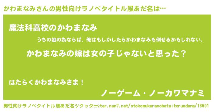 | 女子向けラノベタイトル風あだ名 | 『かわまなみ様がみてる』 |