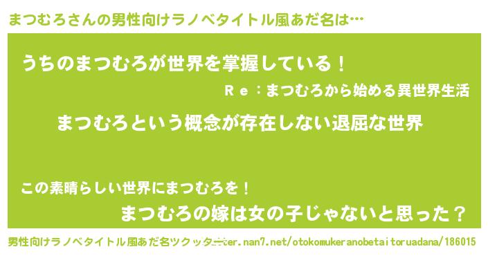 | 胡散臭い通販商品みたいなあだ名 | 『来世でも幸せになれる水素水…その名も「まつむろ」』 |