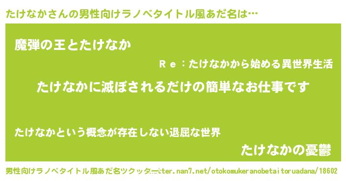たけなかさんの男性向けラノベタイトル風あだ名をツクッター!