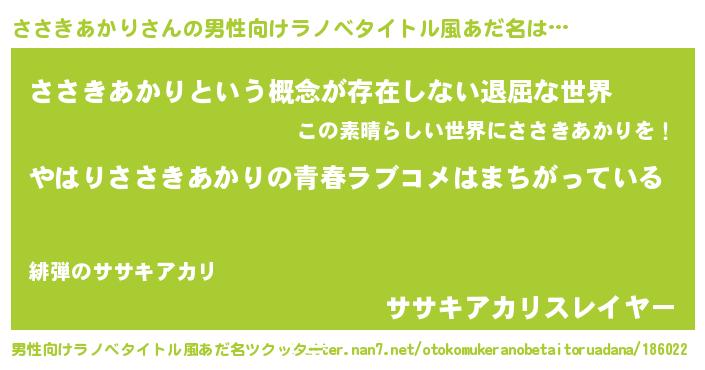 | ファンタジー風あだ名 | 『エターナルササキアカリー』 |