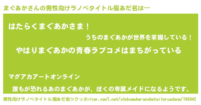 | 女子向けラノベタイトル風あだ名 | 『まぐあかの雑貨屋さん』 |