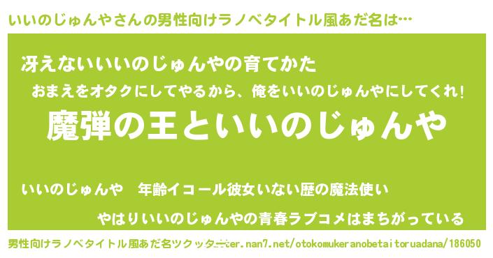 | 意味不明あだ名 | 『住所不定無職いいのじゅんや(74歳)』 |