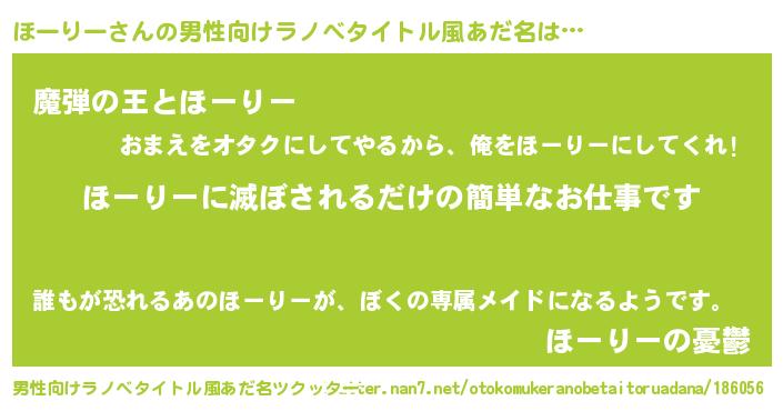 | 胡散臭い通販商品みたいなあだ名 | 『あなたにだけ特別に提供する世界で10本だけ現存している希少なブランデー…その名も「ほーりー」』 |