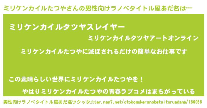 | ヒーロー風カッコイイあだ名 | 『ウルトラミリケンカイルたつやマン』 |