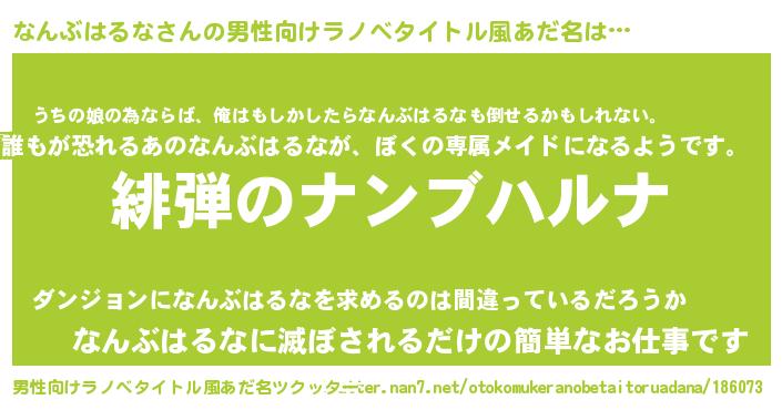 | 女子向けラノベタイトル風あだ名 | 『シンデレラなんぶはるな家の靴箱館』 |