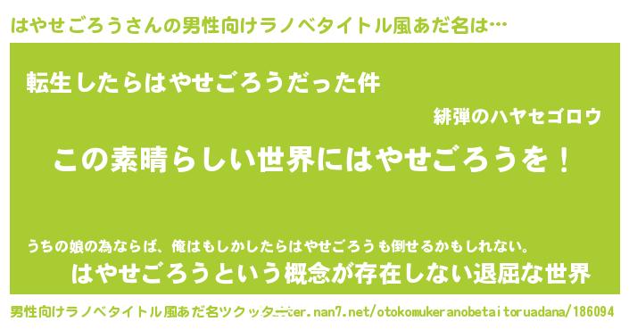 | ヒーロー風カッコイイあだ名 | 『仮面ハヤダー』『ネオハヤセゴロウ』 |
