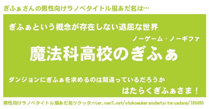 | 女子向けラノベタイトル風あだ名 | 『ぎふぁなんてお断りですっ。』 |