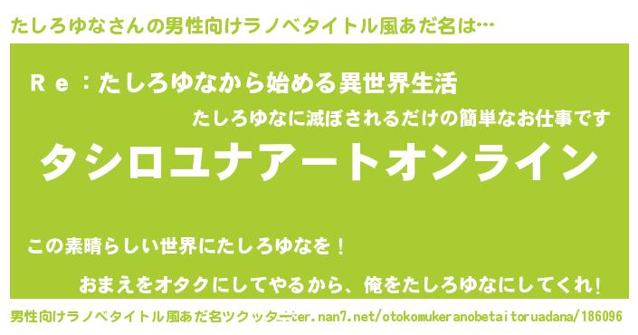 | 胡散臭い通販商品みたいなあだ名 | 『モテモテ間違いなしブレスレット…その名も「たしろゆな」』 |