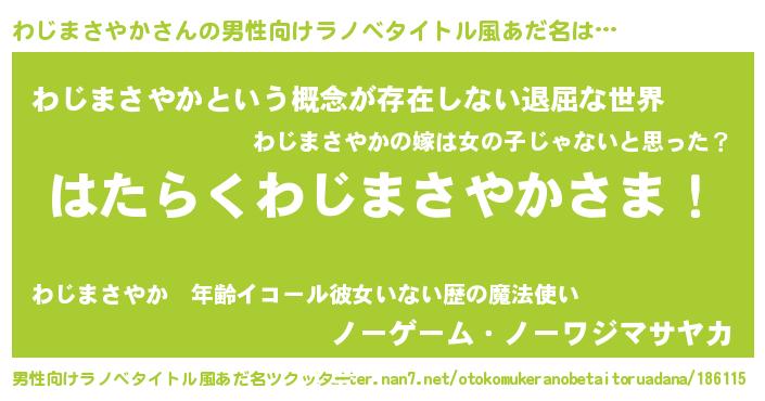 | ヘコむあだ名 | 『わじまさやか(小並感)』『わじ太郎』 |