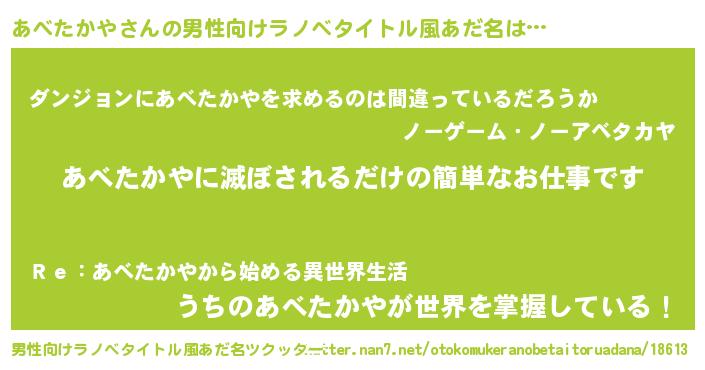 | 意味不明あだ名 | 『とにかく怪しいあべたかや』 |