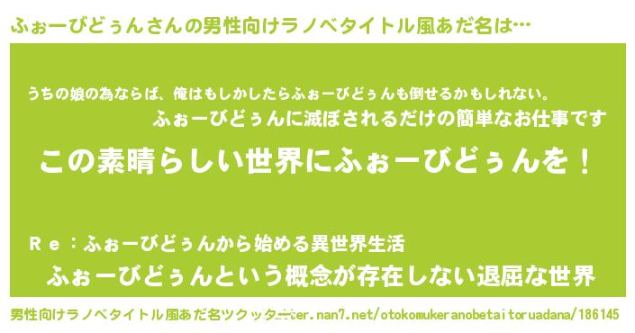 | 意味不明あだ名 | 『住所不定無職ふぉーびどぅん(47歳)』 |