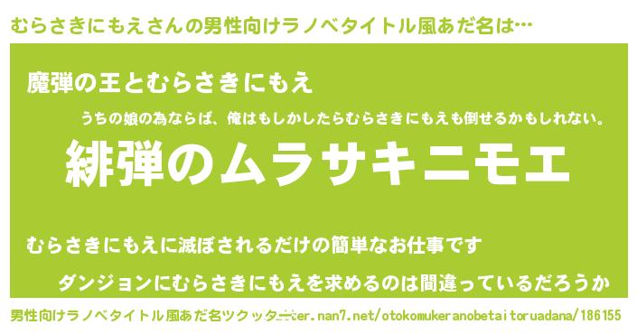 むらさきにもえさんの男性向けラノベタイトル風あだ名をツクッター!