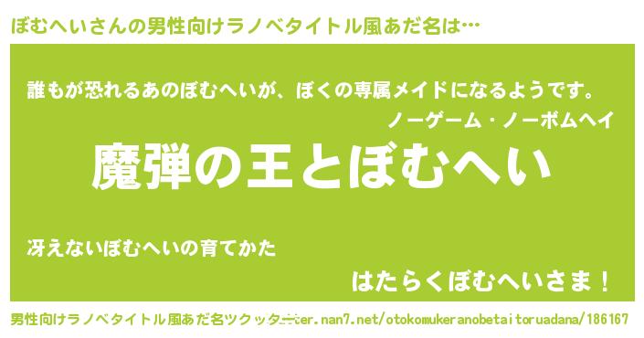 | 意味不明あだ名 | 『住所不定無職ぼむへい(2歳)』 |