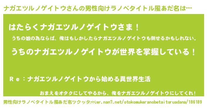 | 伝説のあだ名 | 『救世主となる占い師ナガエツルノゲイトウ』 |