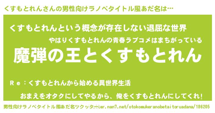 | 意味不明あだ名 | 『住所不定無職くすもとれん(77歳)』 |