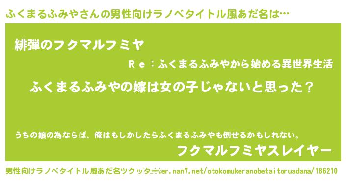 | 胡散臭い通販商品みたいなあだ名 | 『全米が絶賛したサプリメント…その名も「ふくまるふみや」』 |