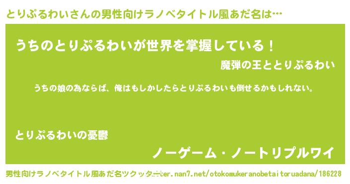 | 女子向けラノベタイトル風あだ名 | 『とりぷるわいの婚約者』 |