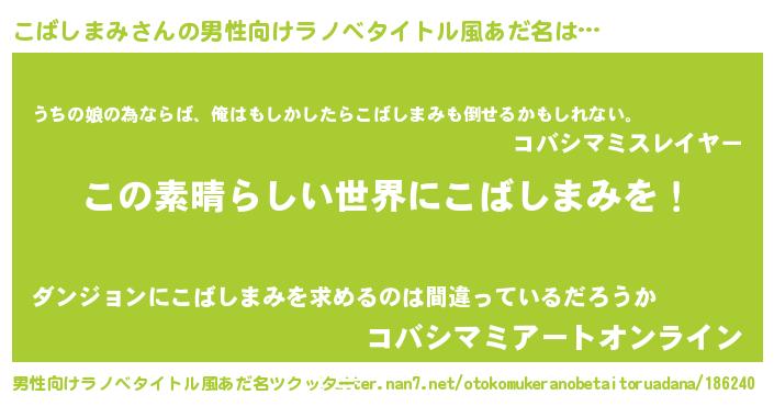 | 意味不明あだ名 | 『住所不定無職こばしまみ(74歳)』 |