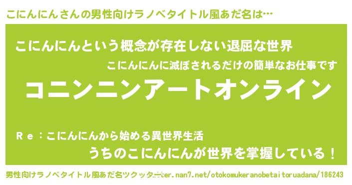| 意味不明あだ名 | 『ペロリンこにんにん』『自称こにんにん』 |