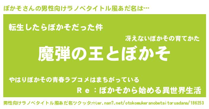 | 女子向けラノベタイトル風あだ名 | 『ぼかそが死なない童話 林檎のぼかその診療簿』 |