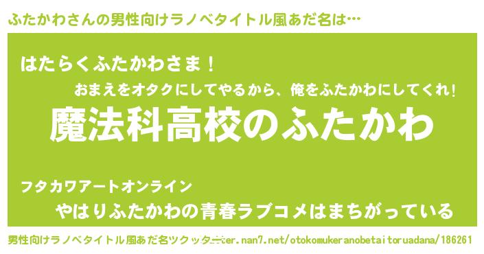 | 意味不明あだ名 | 『自称ふたかわ』『ふたかわフォーエバー』 |